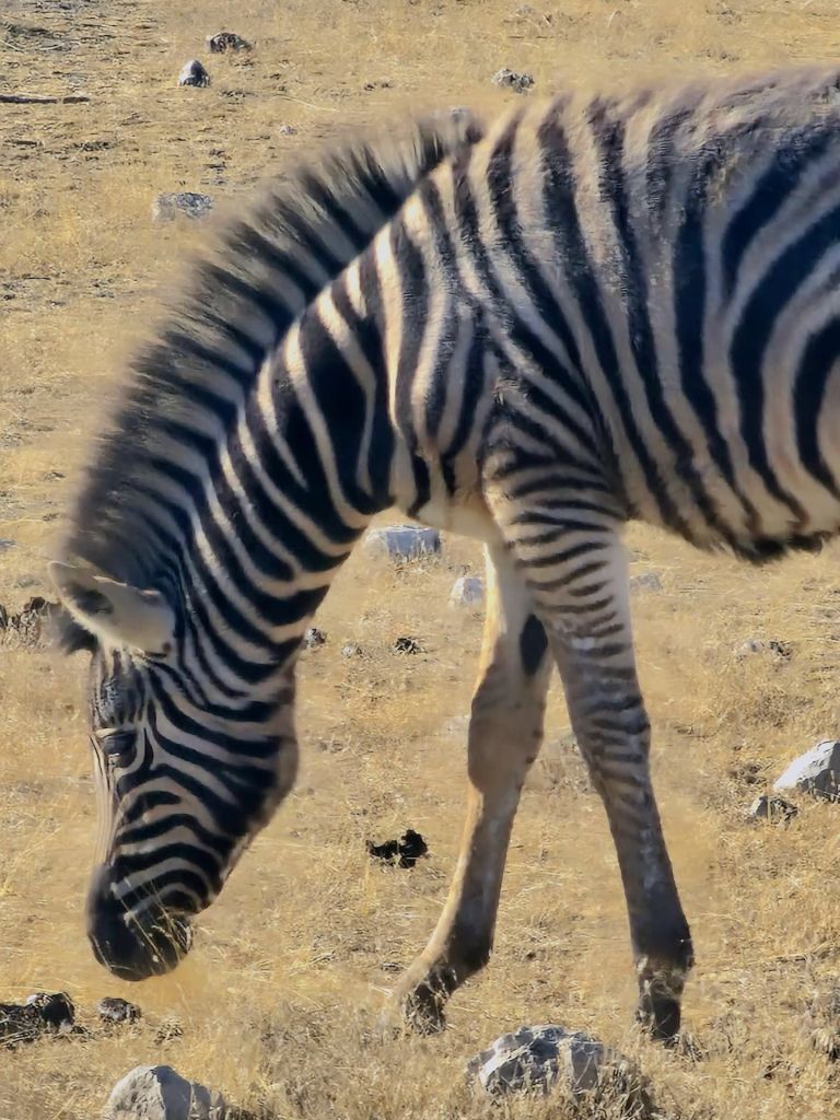 Io no! Nell’Etosha park, le Zebre baby scorazzano di qua e di là mentre quelle adulte sono più tranquille. Tranquille per modo di dire perché sono animali abbastanza aggressivi e per questo non possono essere addomesticate, in più non ruminano come mucche o i cavalli.