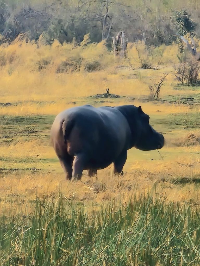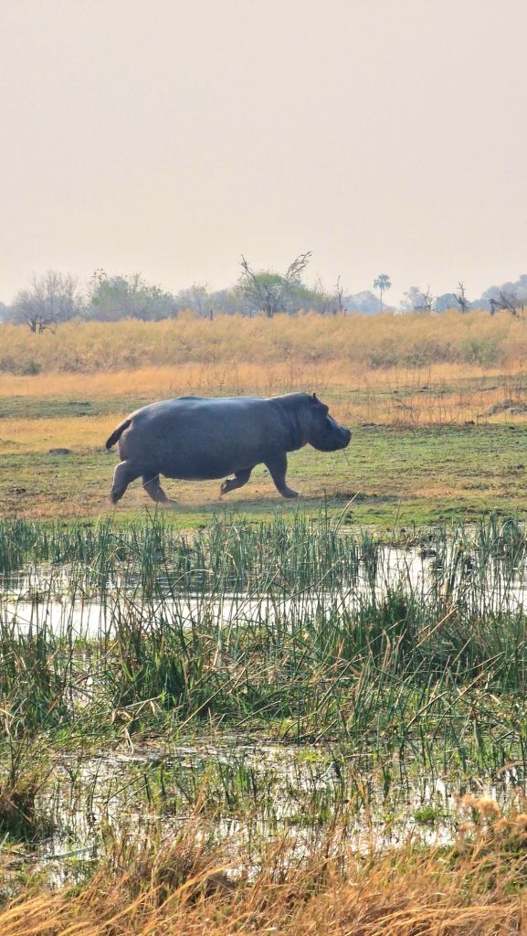 Abbiamo incontrato numerosi ippopotami sia in Namibia che in Botswana, creature che ispirano storie e leggende attorno al fuoco nella cultura africana. Sorprendentemente, gli ippopotami sono responsabili di molte morti in Africa, spesso più della malaria. Sono animali potenti e pericolosi, capaci di spezzare una persona a metà con un solo morso. Attaccano soprattutto quando si sentono minacciati, come quando gli esseri umani invadono i loro percorsi nell’acqua, un problema comune per i pescatori locali.